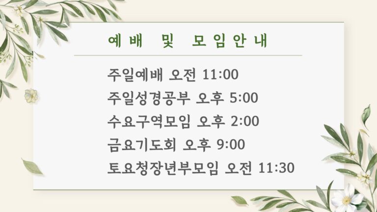 예배에 참석하시는 모든 분들을 진심으로 환영합니다.